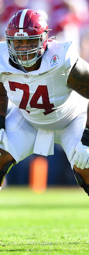 Enormous man with prototypical height, well-distributed mass, grapevines for arms, and a gigantic wingspan. Former 5-star recruit who has started at OLT since he walked on campus. Despite size, moves easily and has an easy kick slide. Light on his feet, plays with good bend and leverage, and is very athletic for his size. Only average twitch and first step quickness and can be beaten off the snap by a twitchy EDGE. Surprisingly effective blocker in space. When he extends and locks out, it takes an Uber ride to get around him. Very good balance. Re-directs easily and handles blitzes and stunts well. Needs better depth in his pass drops to cut off speed rushers from countering and getting past his inside shoulder. Possesses a strong punch that can rock a defender backwards but needs work on placement and consistency - hands are too easily discarded. Needs to improve grip strength. Nearly impossible to bull rush when he drops his pads adequately. Pads rise when he is tired and when he is tired, he gets beat late in the rep. Exhibits the mean streak and nastiness desired in offensive lineman. Used as a short yardage runner in some situations and is a truly scary sight running the ball – powerful is an understatement. Looks like a long-term NFL starter with Pro Bowl potential if he refines his technique. Participated in NFL Scouting Combine after the season. |